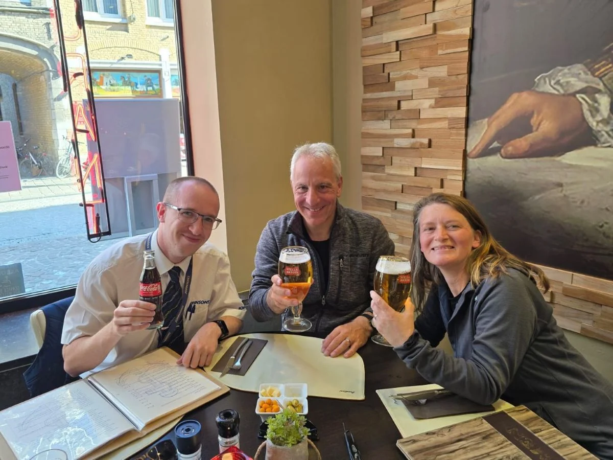 Isn’t it a small world! We did get a special treat for our visit to Antwerp as one of my old aviation friends lives nearby and joined us for the day as our own personal tour guide, many thanks Ken. Then whilst walking by Saint Nicholas’ Church in Ghent Annette literally bumped into Joe, an old work colleague; how amazing was that. Finally and most amusingly we have been trying for a long time to meet up with our coach driver friend from Rubery but have failed even when staying in Redditch only miles from his home. Low and behold he was driving to Belgium on a weekend job and we actually got to meet up in Ypres for a lovely pizza – really good to catch up with you Carlos and nice to meet Martin.